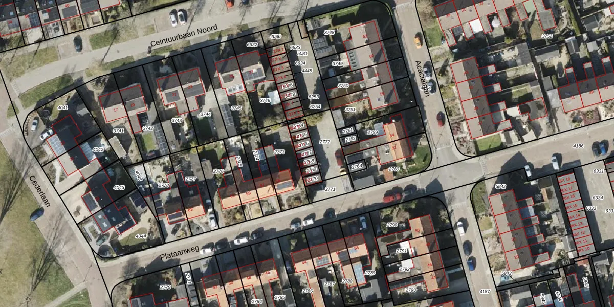 Gebruik de zoekbalk of klik op een perceel om informatie over het perceel te bekijken.