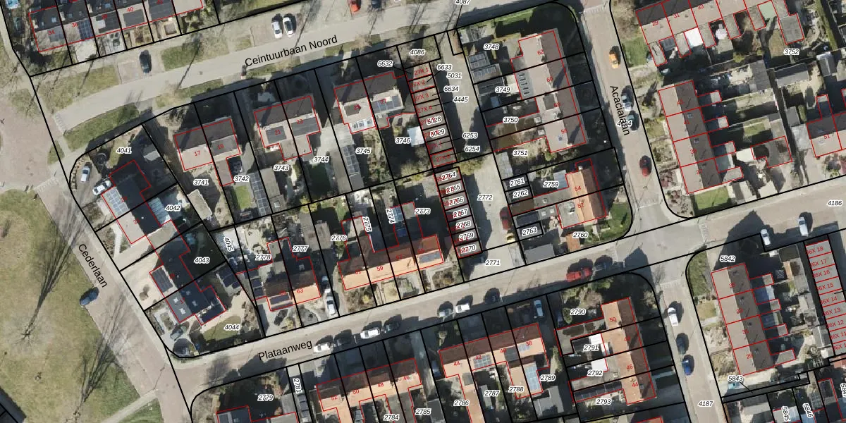 Gebruik de zoekbalk of klik op een perceel om informatie over het perceel te bekijken.