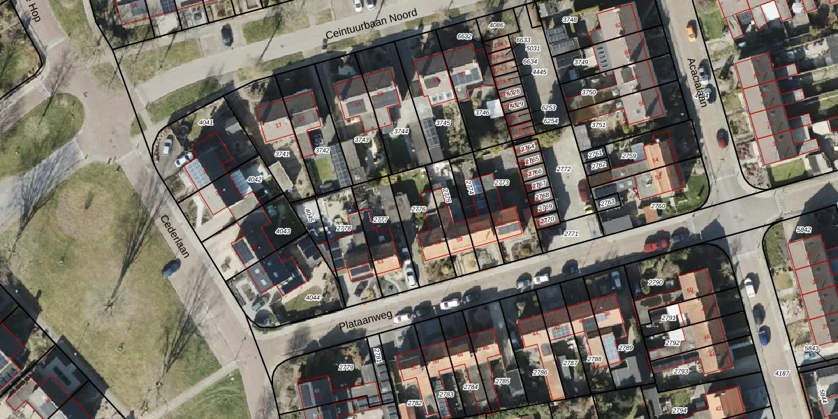 Gebruik de zoekbalk of klik op een perceel om informatie over het perceel te bekijken.