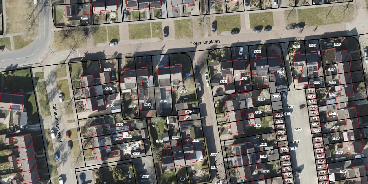 Gebruik de zoekbalk of klik op een perceel om informatie over het perceel te bekijken.