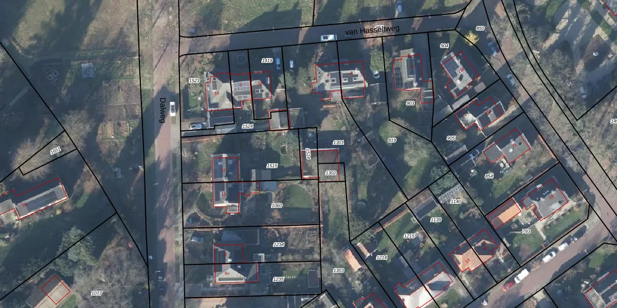 Gebruik de zoekbalk of klik op een perceel om informatie over het perceel te bekijken.