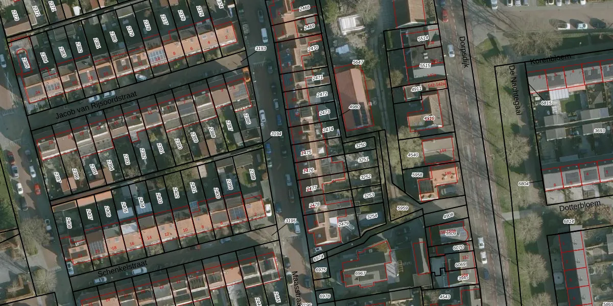 Gebruik de zoekbalk of klik op een perceel om informatie over het perceel te bekijken.