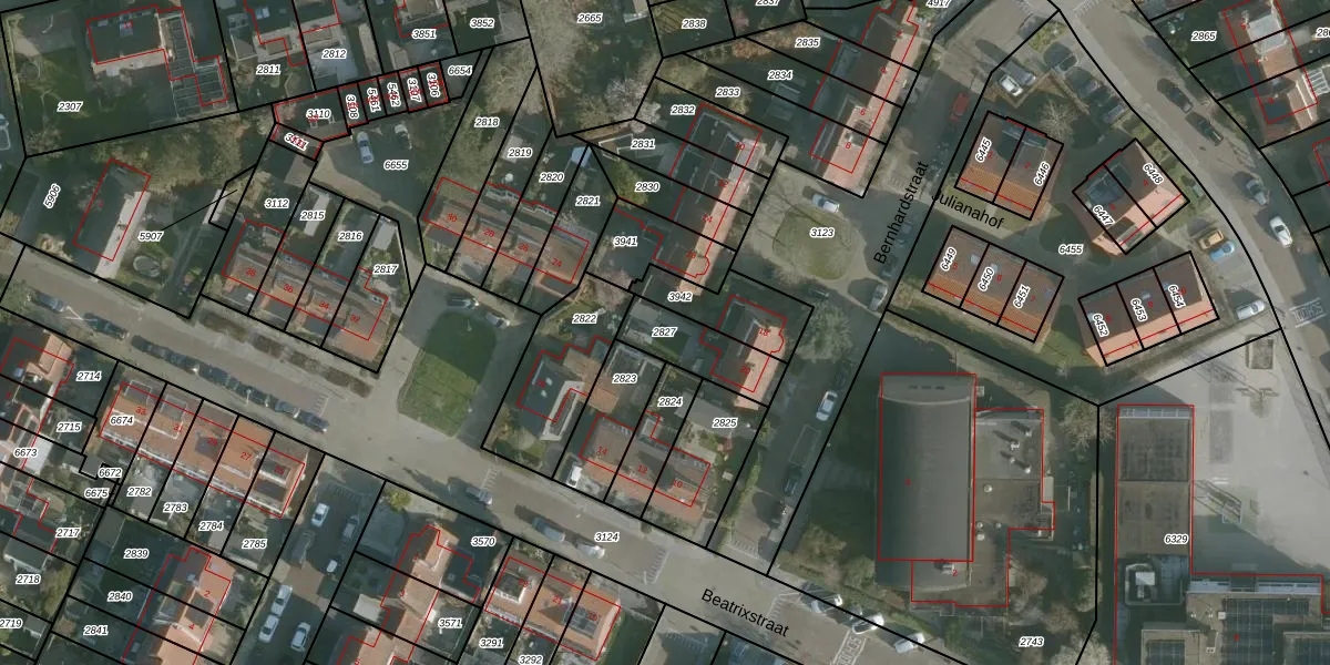 Gebruik de zoekbalk of klik op een perceel om informatie over het perceel te bekijken.