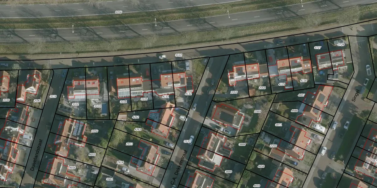 Gebruik de zoekbalk of klik op een perceel om informatie over het perceel te bekijken.