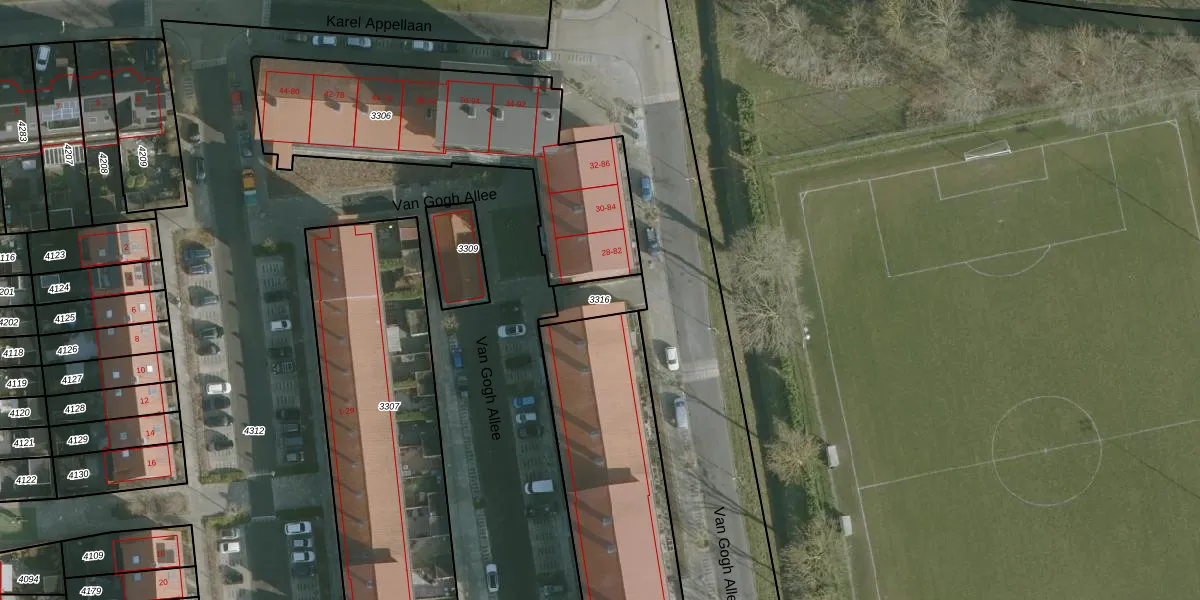 Gebruik de zoekbalk of klik op een perceel om informatie over het perceel te bekijken.