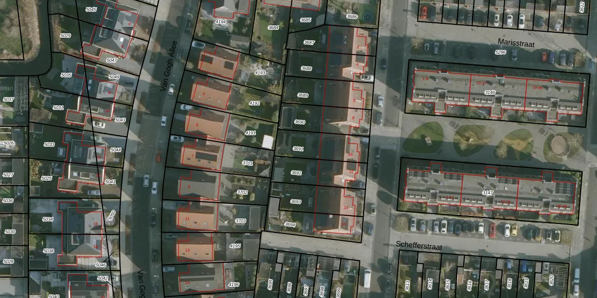 Gebruik de zoekbalk of klik op een perceel om informatie over het perceel te bekijken.