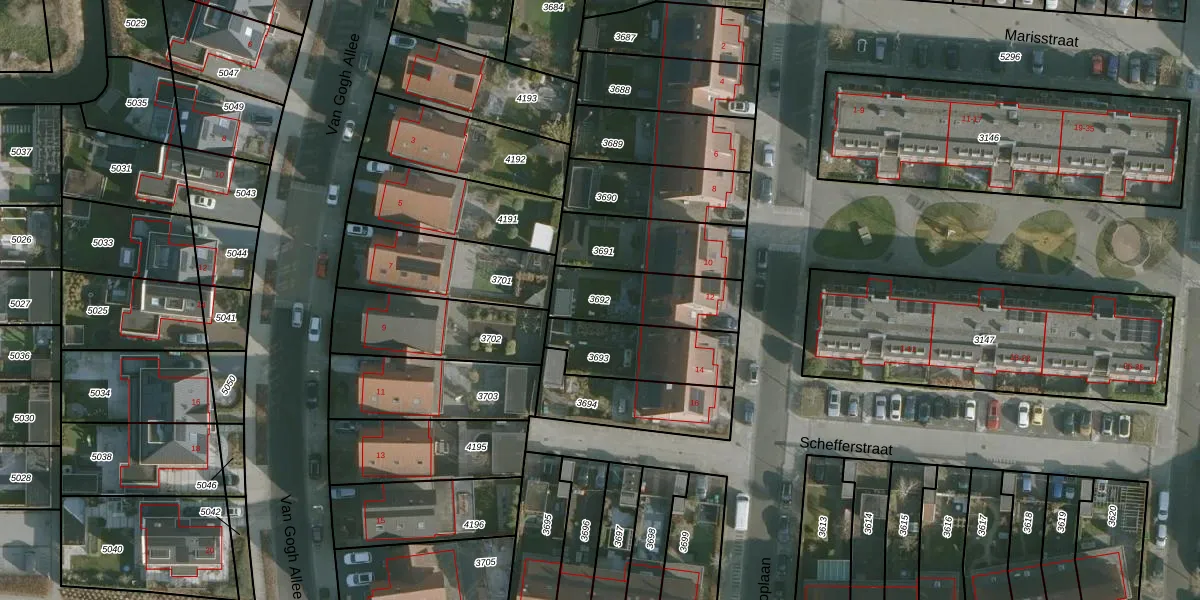 Gebruik de zoekbalk of klik op een perceel om informatie over het perceel te bekijken.