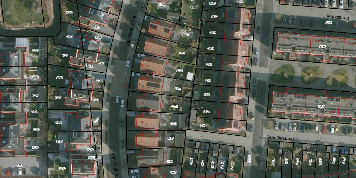 Gebruik de zoekbalk of klik op een perceel om informatie over het perceel te bekijken.