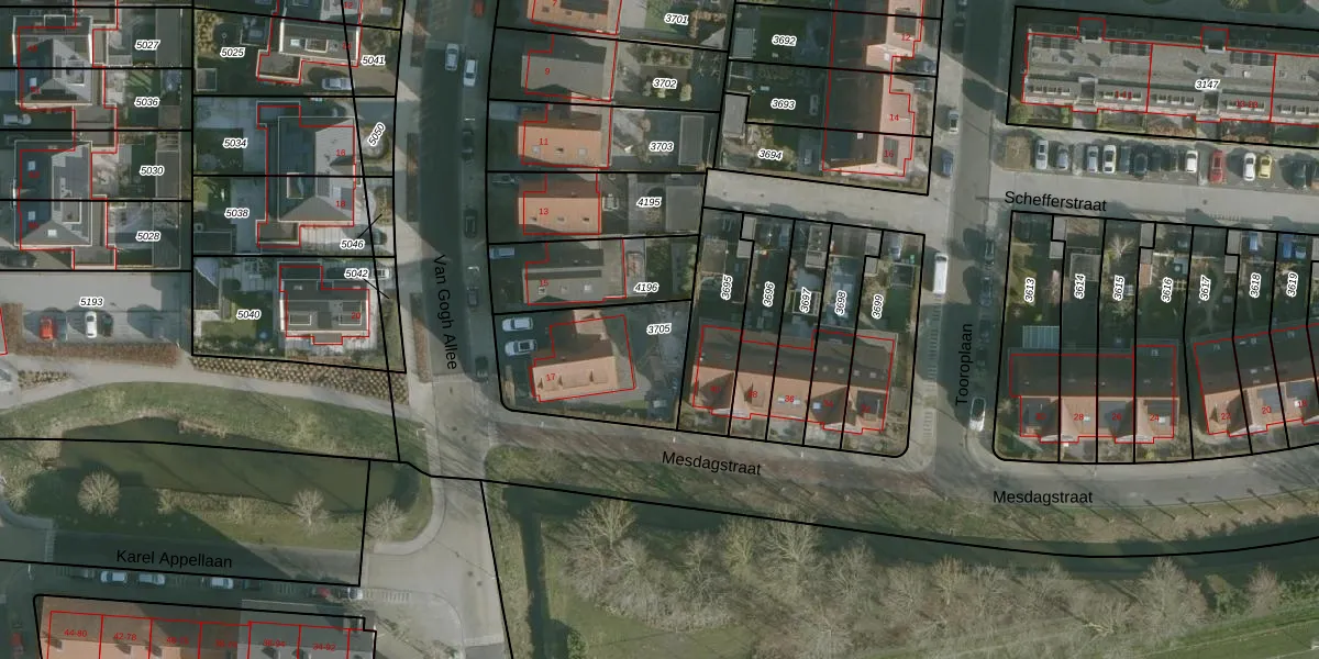 Gebruik de zoekbalk of klik op een perceel om informatie over het perceel te bekijken.