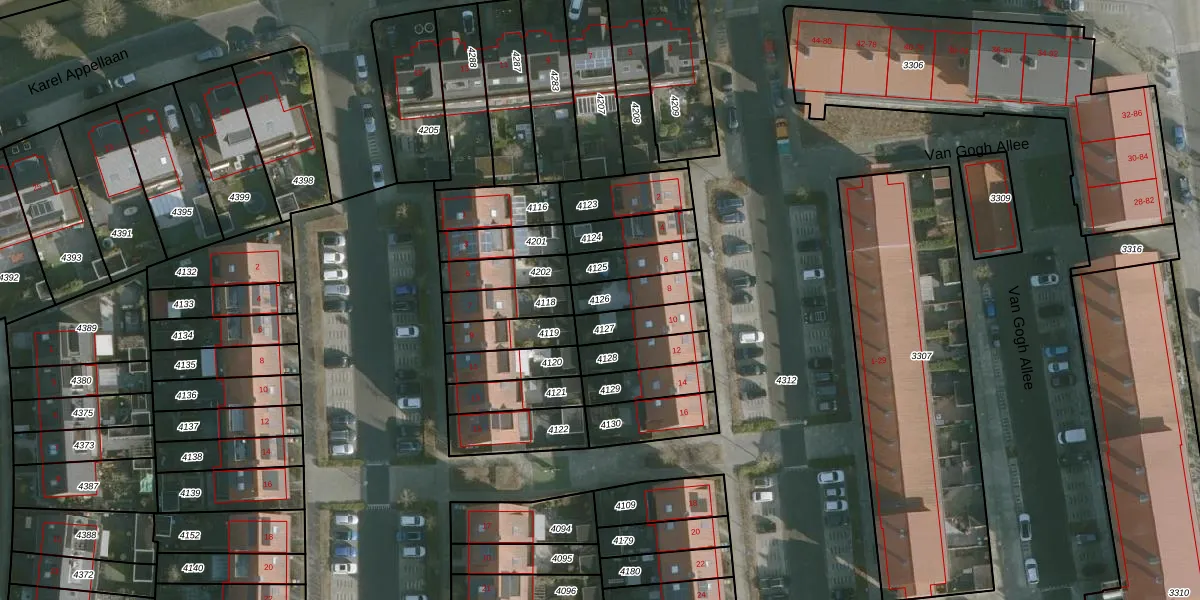 Gebruik de zoekbalk of klik op een perceel om informatie over het perceel te bekijken.