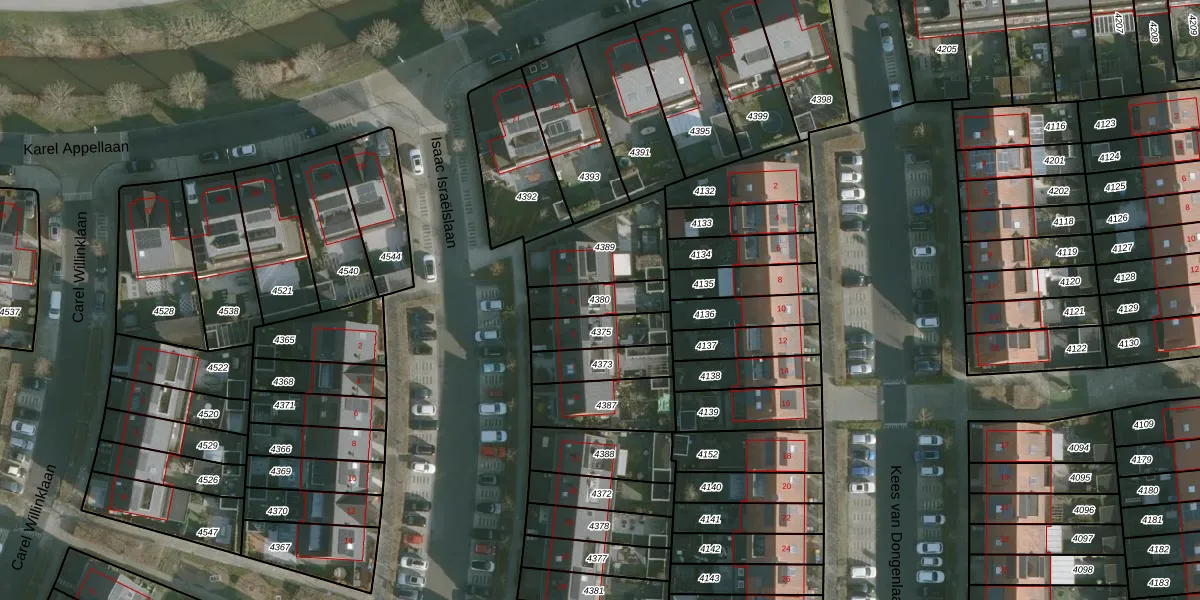 Gebruik de zoekbalk of klik op een perceel om informatie over het perceel te bekijken.