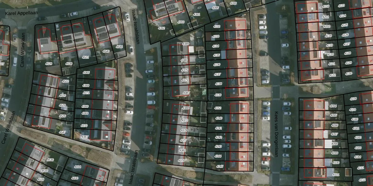 Gebruik de zoekbalk of klik op een perceel om informatie over het perceel te bekijken.
