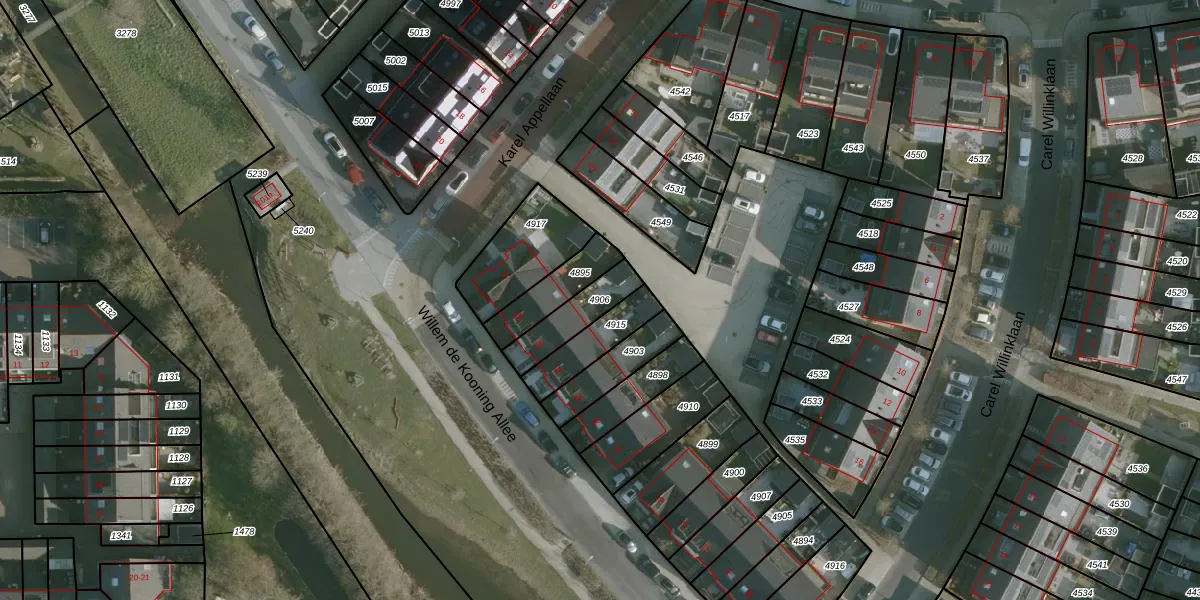 Gebruik de zoekbalk of klik op een perceel om informatie over het perceel te bekijken.