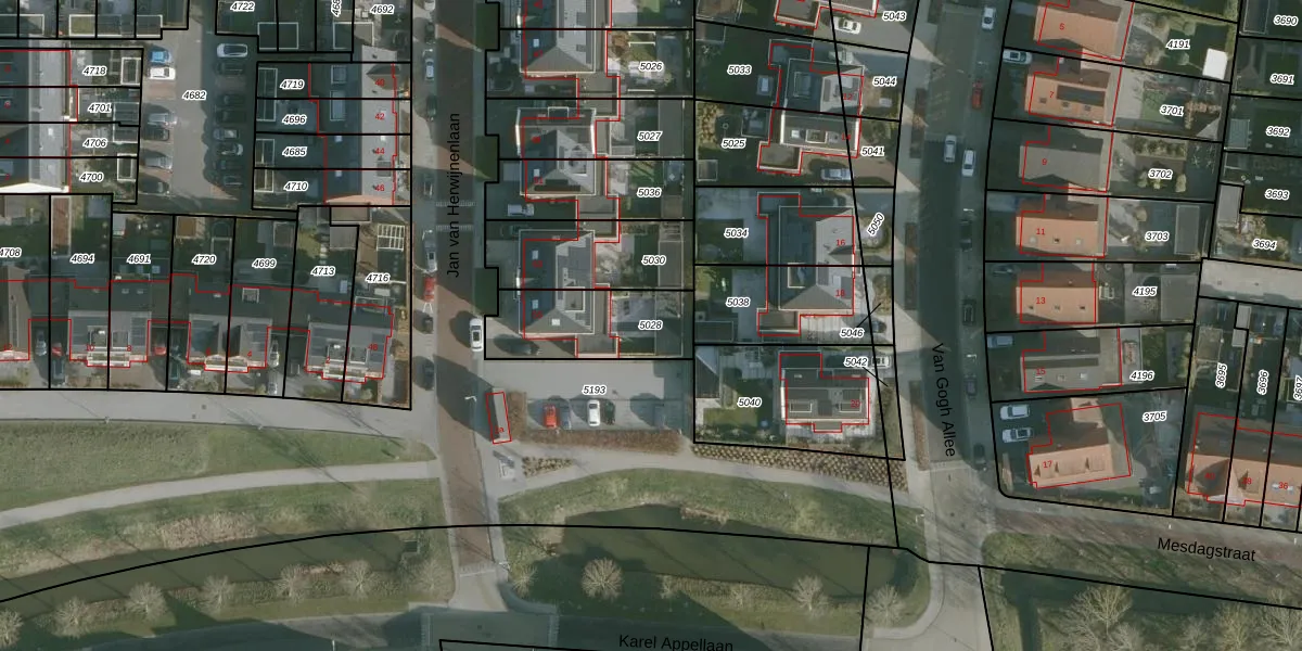 Gebruik de zoekbalk of klik op een perceel om informatie over het perceel te bekijken.