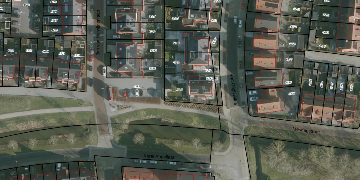 Gebruik de zoekbalk of klik op een perceel om informatie over het perceel te bekijken.