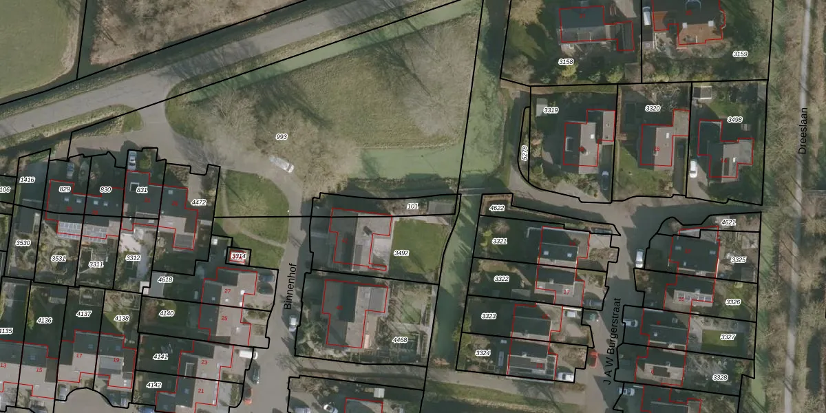 Gebruik de zoekbalk of klik op een perceel om informatie over het perceel te bekijken.