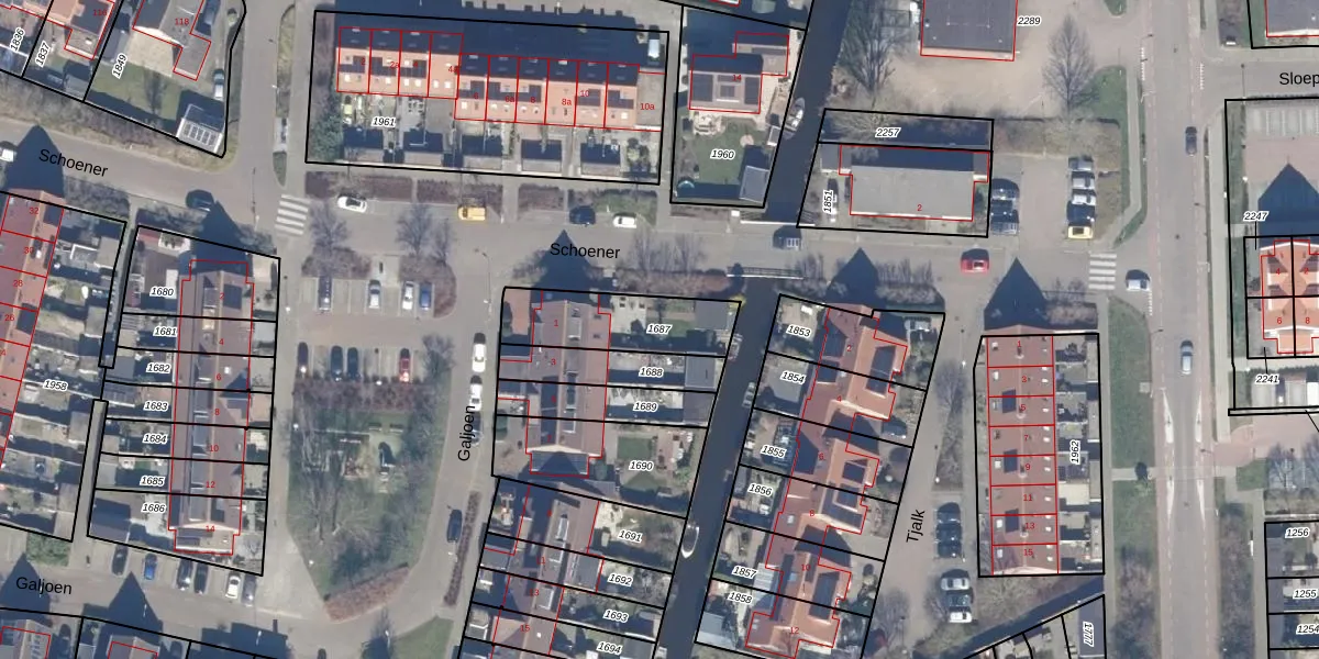 Gebruik de zoekbalk of klik op een perceel om informatie over het perceel te bekijken.