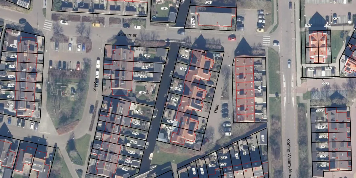 Gebruik de zoekbalk of klik op een perceel om informatie over het perceel te bekijken.
