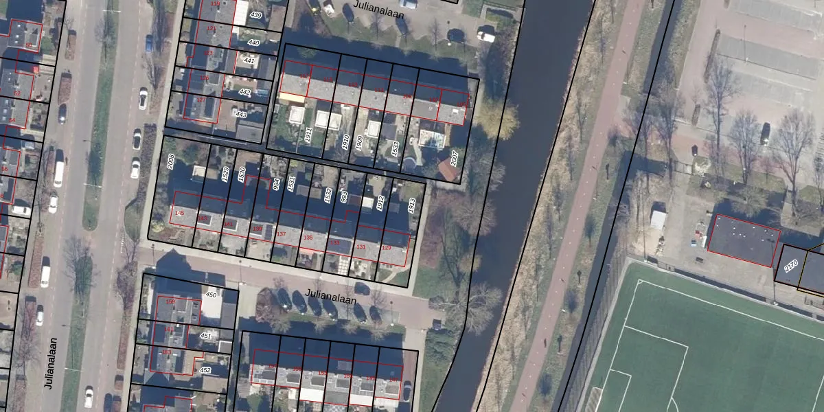 Gebruik de zoekbalk of klik op een perceel om informatie over het perceel te bekijken.