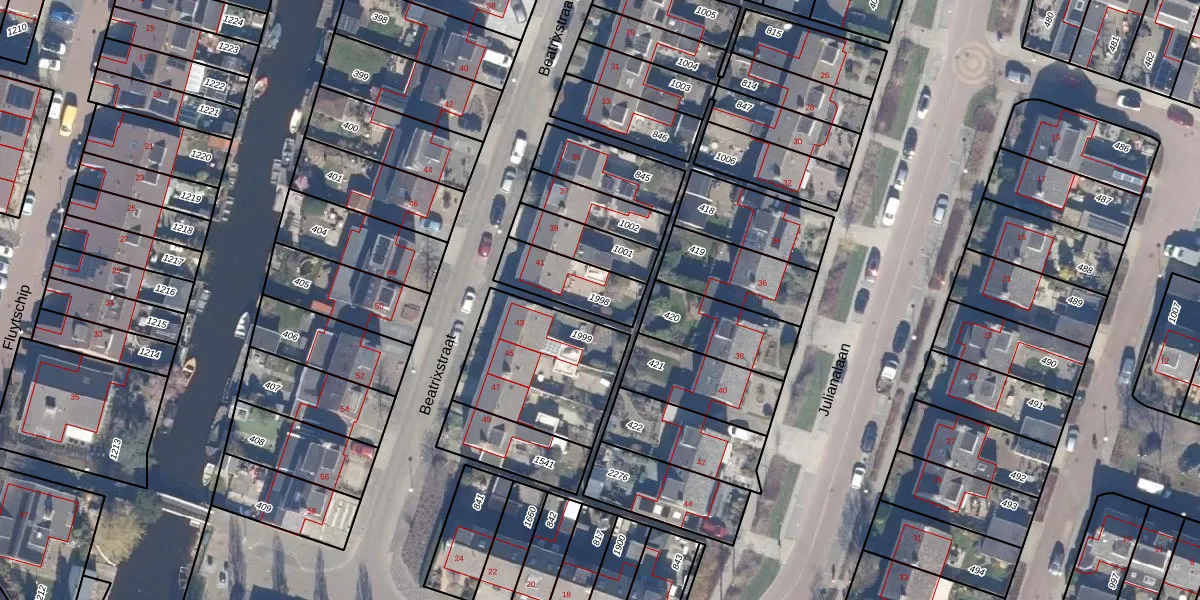 Gebruik de zoekbalk of klik op een perceel om informatie over het perceel te bekijken.