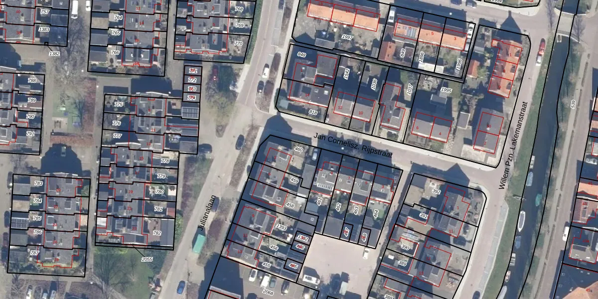 Gebruik de zoekbalk of klik op een perceel om informatie over het perceel te bekijken.