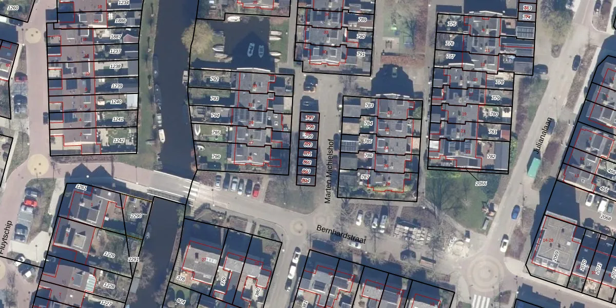 Gebruik de zoekbalk of klik op een perceel om informatie over het perceel te bekijken.