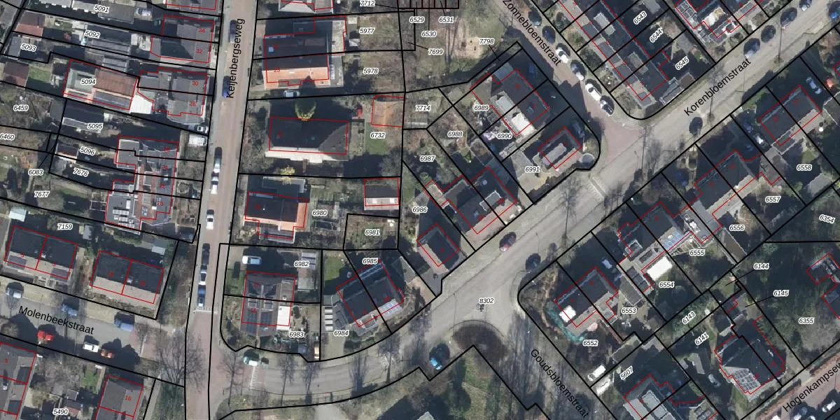 Gebruik de zoekbalk of klik op een perceel om informatie over het perceel te bekijken.