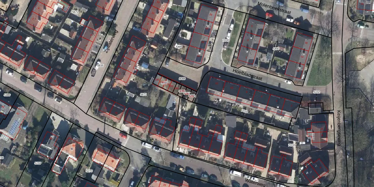 Gebruik de zoekbalk of klik op een perceel om informatie over het perceel te bekijken.