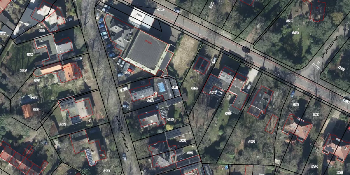 Gebruik de zoekbalk of klik op een perceel om informatie over het perceel te bekijken.