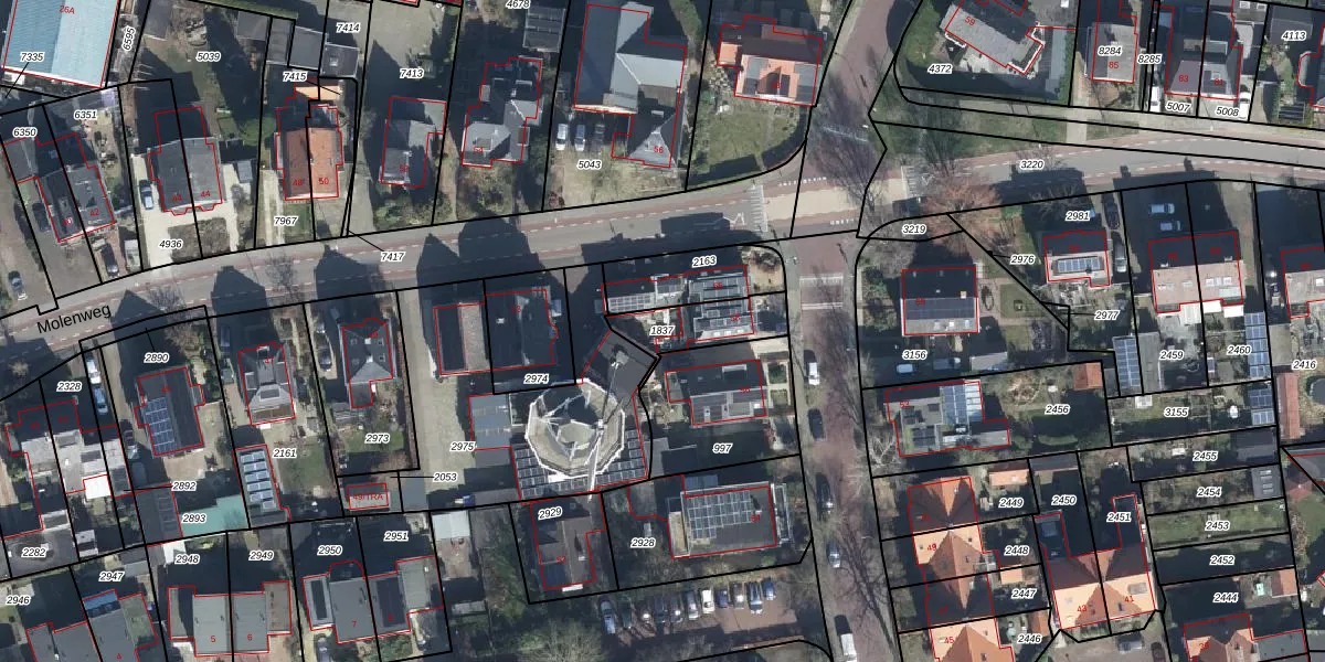 Gebruik de zoekbalk of klik op een perceel om informatie over het perceel te bekijken.