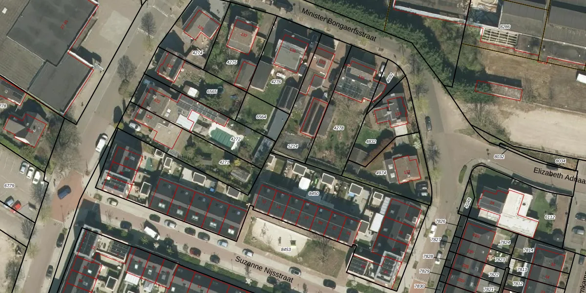 Gebruik de zoekbalk of klik op een perceel om informatie over het perceel te bekijken.