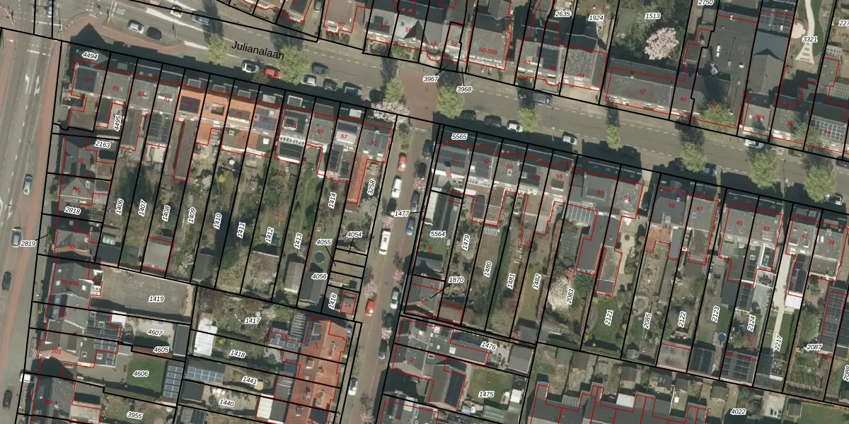 Gebruik de zoekbalk of klik op een perceel om informatie over het perceel te bekijken.