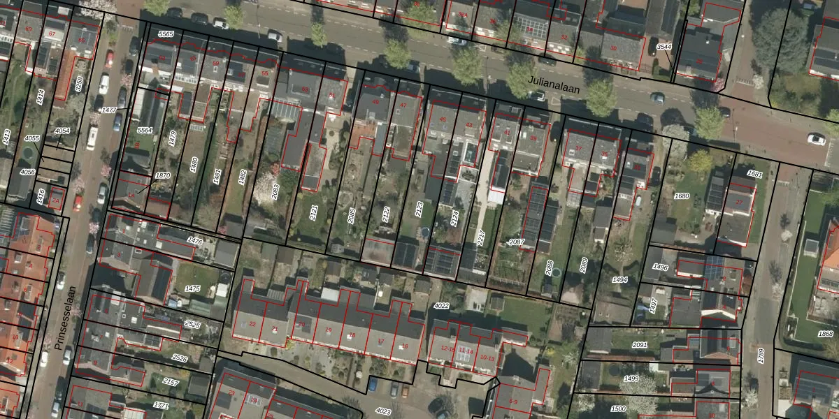 Gebruik de zoekbalk of klik op een perceel om informatie over het perceel te bekijken.