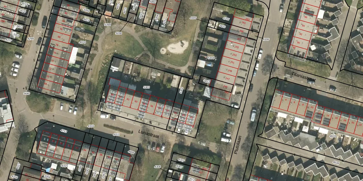 Gebruik de zoekbalk of klik op een perceel om informatie over het perceel te bekijken.