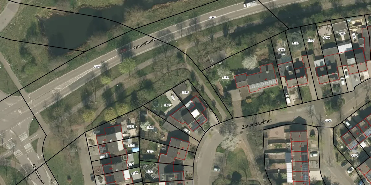 Gebruik de zoekbalk of klik op een perceel om informatie over het perceel te bekijken.