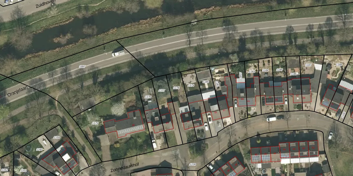 Gebruik de zoekbalk of klik op een perceel om informatie over het perceel te bekijken.