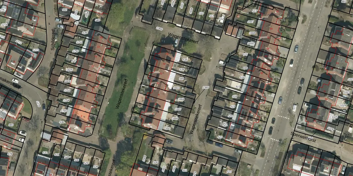 Gebruik de zoekbalk of klik op een perceel om informatie over het perceel te bekijken.