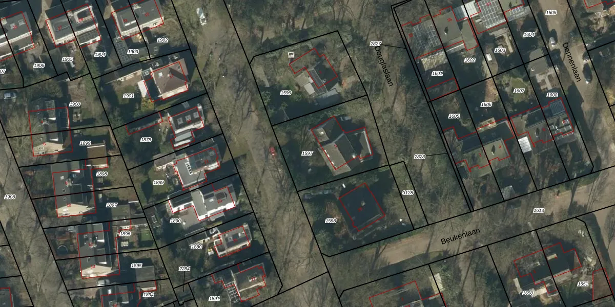 Gebruik de zoekbalk of klik op een perceel om informatie over het perceel te bekijken.