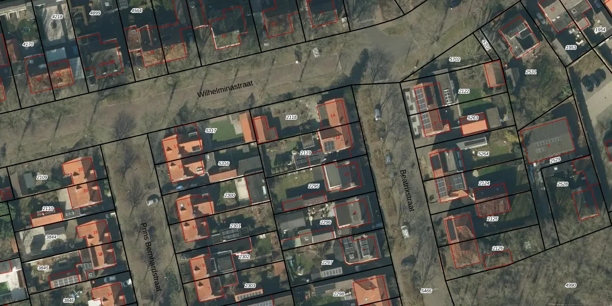 Gebruik de zoekbalk of klik op een perceel om informatie over het perceel te bekijken.