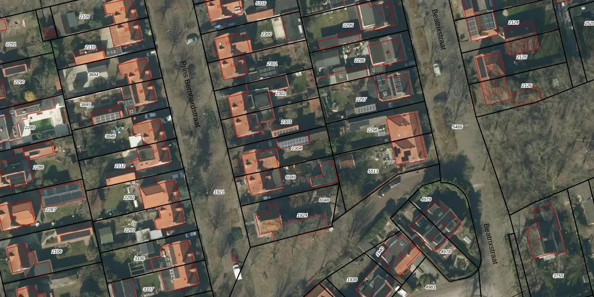 Gebruik de zoekbalk of klik op een perceel om informatie over het perceel te bekijken.