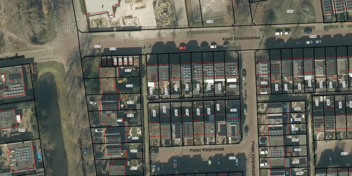 Gebruik de zoekbalk of klik op een perceel om informatie over het perceel te bekijken.