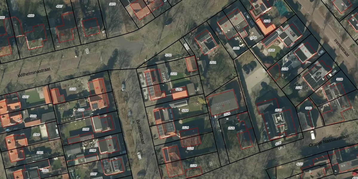 Gebruik de zoekbalk of klik op een perceel om informatie over het perceel te bekijken.
