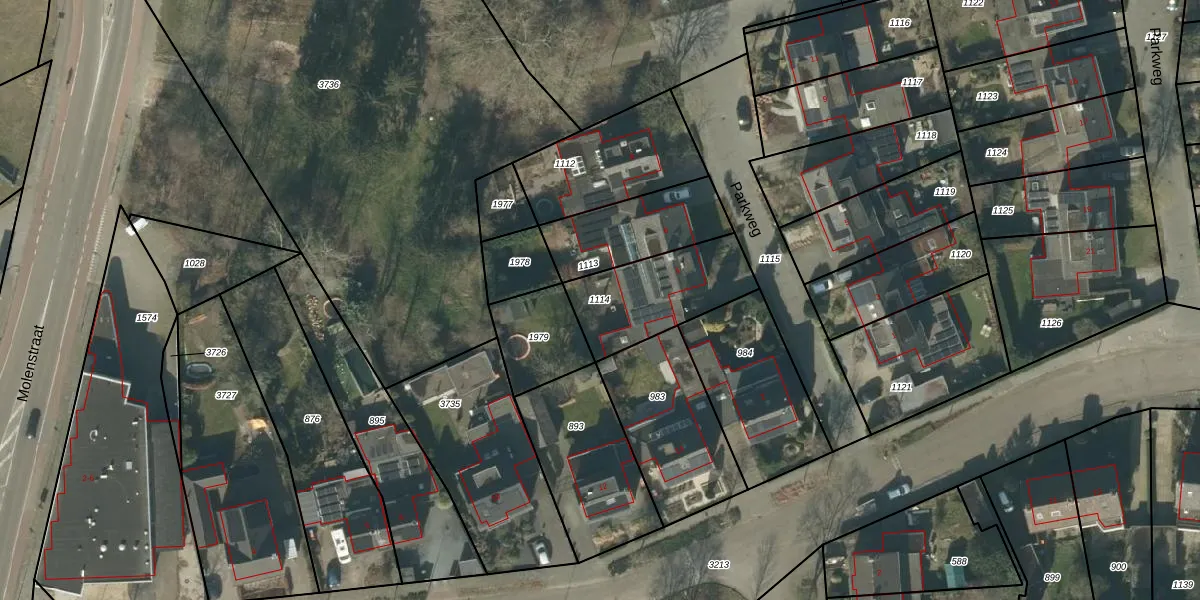 Gebruik de zoekbalk of klik op een perceel om informatie over het perceel te bekijken.