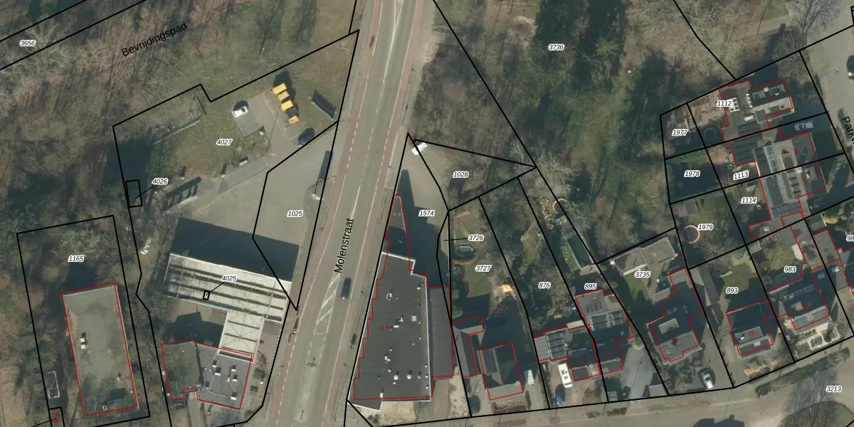 Gebruik de zoekbalk of klik op een perceel om informatie over het perceel te bekijken.