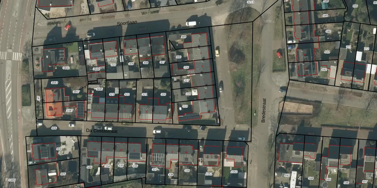 Gebruik de zoekbalk of klik op een perceel om informatie over het perceel te bekijken.
