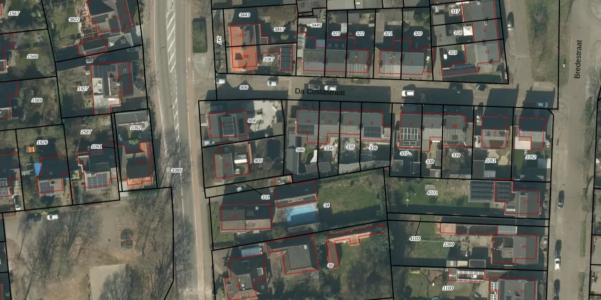 Gebruik de zoekbalk of klik op een perceel om informatie over het perceel te bekijken.