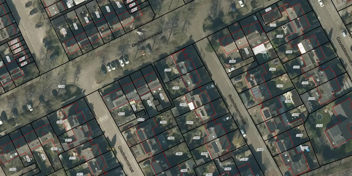Gebruik de zoekbalk of klik op een perceel om informatie over het perceel te bekijken.