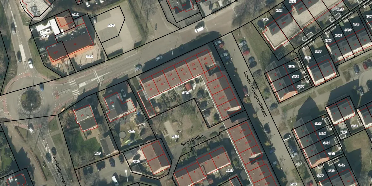 Gebruik de zoekbalk of klik op een perceel om informatie over het perceel te bekijken.