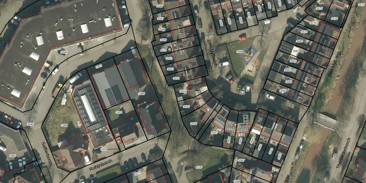 Gebruik de zoekbalk of klik op een perceel om informatie over het perceel te bekijken.