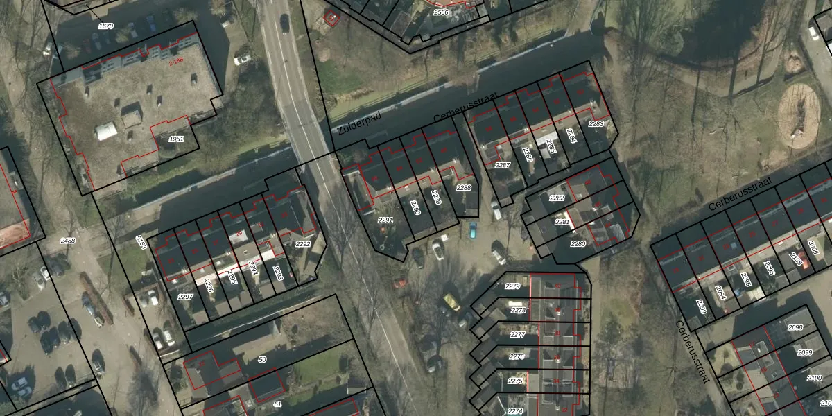 Gebruik de zoekbalk of klik op een perceel om informatie over het perceel te bekijken.